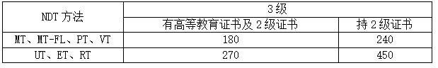 1、初次认证申请人最低工作经历时间,应满足ISO 9712:2021要求,见表2。